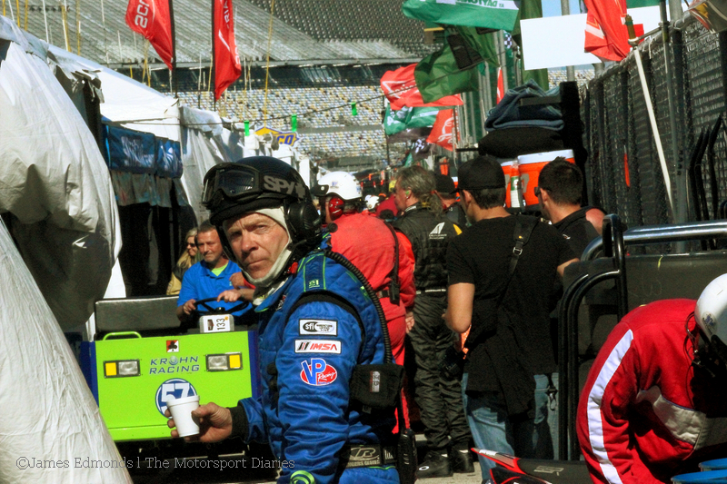 Just before the race got under way I spoke to Martin Plowman.ย He distinguished himself with aplomb at Le Mans 2013 when he helped his team to a class win in LMP2 at his first attempt in the Morgan-Nissan.ย Being in the fast car is becoming a habit for him.ย How did he feel going into his first Rolex 24?ย โI love these 24 hour races. They really test the whole team and for the drivers itโs a very mental challenge.โย He continues the thought, โNothing can really prepare you for it.ย You can spend all the time in the gym and preparing for the race, but until youโre in itโฆyou experience so many emotions! My first 24 hour race was a good one as we won it.ย Iโd love to make that two for two today but weโll see how it goes.ย Iโm going to treat every race like itโs my first one and keep my eyes open, be calm, patient.ย The key thing is not to try and be a hero. No matter how many times you do well, if you try to be a hero you end up coming unstuck and doing something stupid.โ