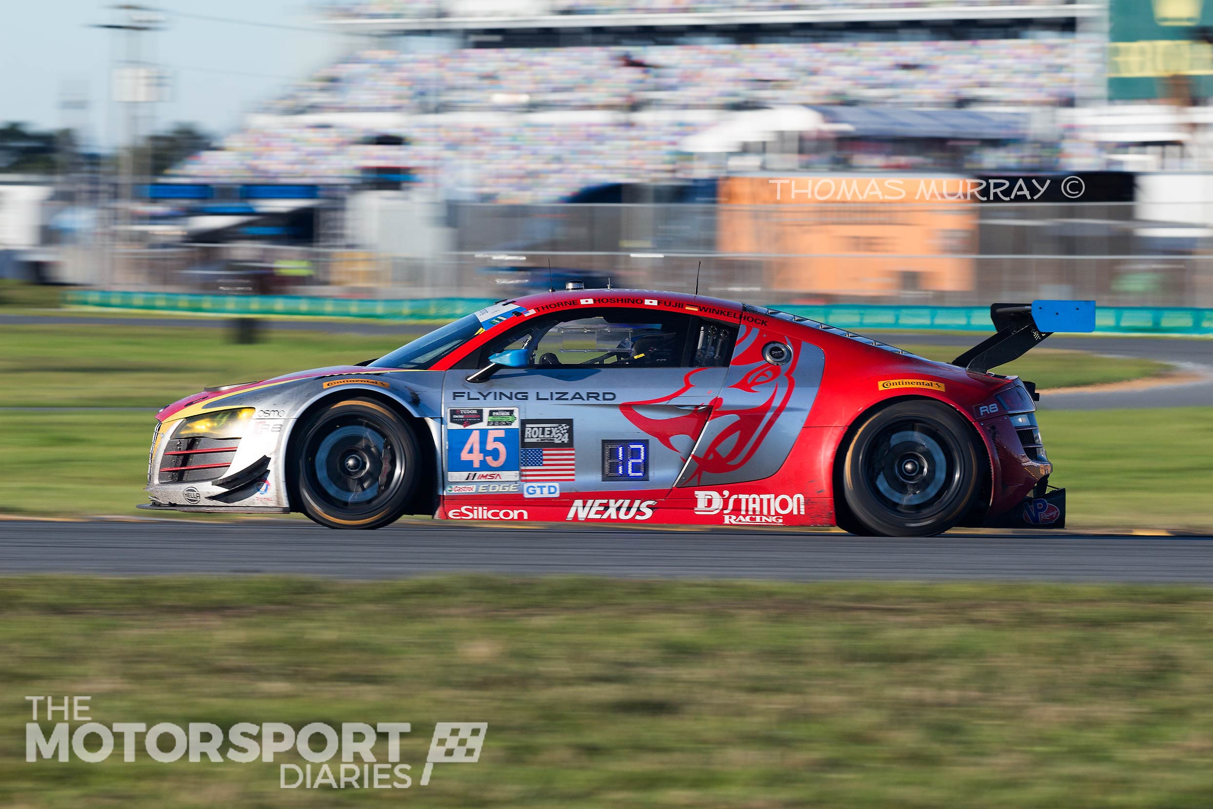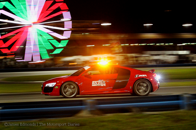 As for our friends in the GTD class Audi R8s, things turned pear shaped after a promising start to the weekend.ย With Seth Neiman selling his interests in Flying Lizard Motorsports – a company he had nurtured since 2003 โ it left new manager Darren Law fielding one car in the 24 hour.