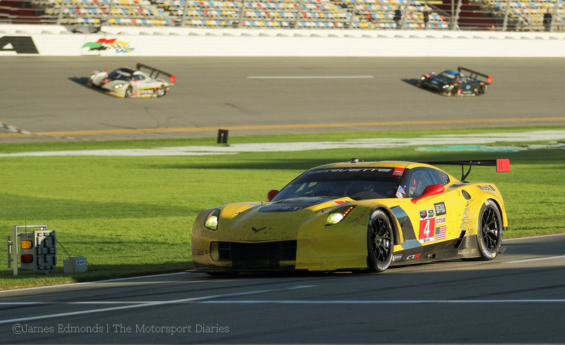 Rolex 24 at Daytona 2015. ย Last year the Flying Lizard Audi R8 LMS was stripped of a GTD Class win after a controversial decision reversal which saw the Level 5 Ferrari take the win in the fiercely contested class.ย This year it was the turn of the Wayne Taylor Racing Corvette Team to incur the wrath of the organizers in the premiere prototype class when its DP car was sent from 3rd to last in class. In a race sponsored by Rolex, it seemed ironic that Jordan Taylor spent a few ticks-of-the-clock too many in the car despite a literal last minute effort to right the wrong.ย Ganassi won again with their Ford Eco Boost entry gaining themselves a record 6th overall win at the twice-around-the-clock classic. As my least favorite class, it would be easy to be blasรฉ about this accomplishment, but the plaudits earned are certainly well deserved.