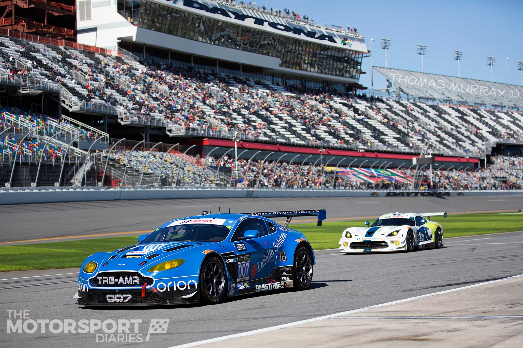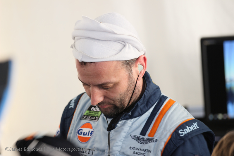 Teammate Darren Turner was equally impressed with the car and buoyed with the news that fatherhood will soon revisit him for the second time!ย This year the Aston was allowed to run with its Le Mans aero package which meant a much better car for a fast track like Daytona.ย โItโs been a big change for us,โ Turner explains, โas last year we were particularly slow on the straights โ not ideal here! Having the upgrades that weโve got has meant that we are a lot more competitiveโฆit certainly feels like it on the banking now.ย Weโre not losing so much ground.ย Hopefully that will bode well for the race and if we keep out of trouble who knows whatโll happen in the final six hours.โ