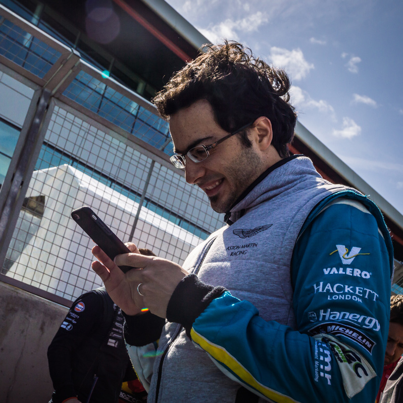 There weren’t many drivers on the grid, but I did manage to find Fernando Rees catching up on his Instagram feed and wearing a big smile.